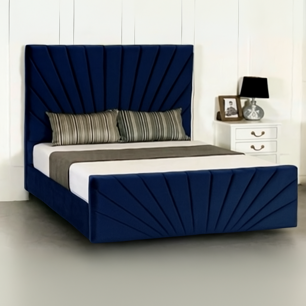 Made with premium fabrics, strong wood, and expert craftsmanship, the Sunrise Design Bed is built to last. Its unique headboard design turns your bedroom into a stylish retreat with comfort at its core.